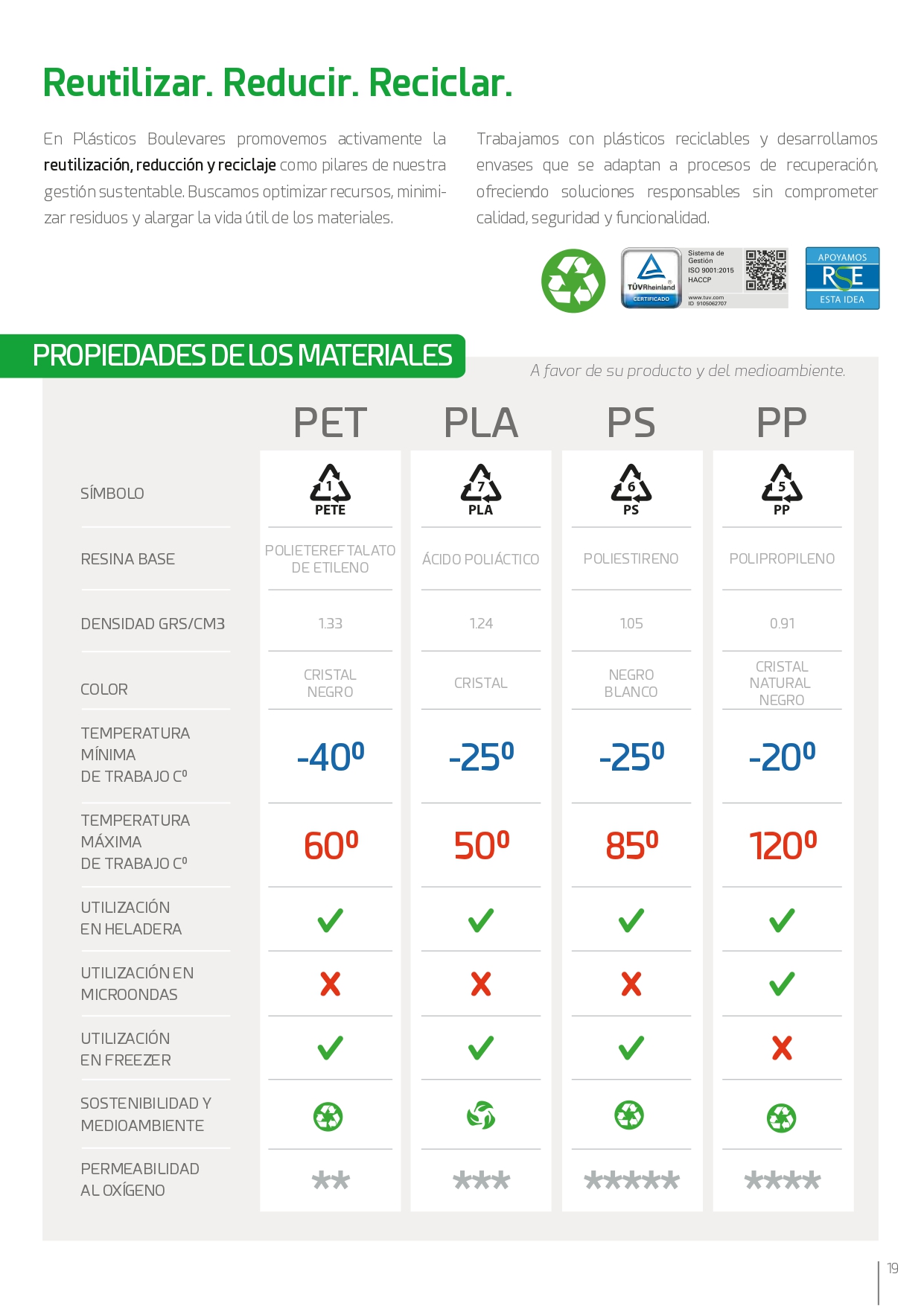 Nos esforzamos por garantizar condiciones laborales adecuadas y limitar el impacto medioambiental tratando de reducir el consumo de energía, produciendo envases prácticos e higiénicos con menor cantidad de material y 100% reciclables.